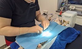 Inden sterilisationen sikre dyrlægen sig, at der er tale om en hunkat og ikke en kryptokid hankat, hvor testiklerne ligger oppe i bugen.